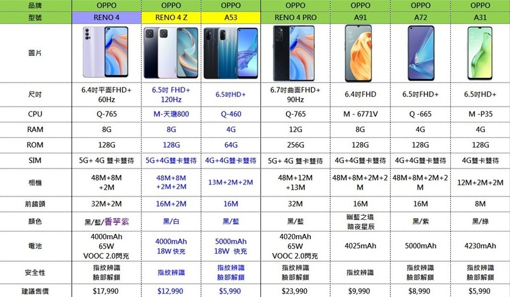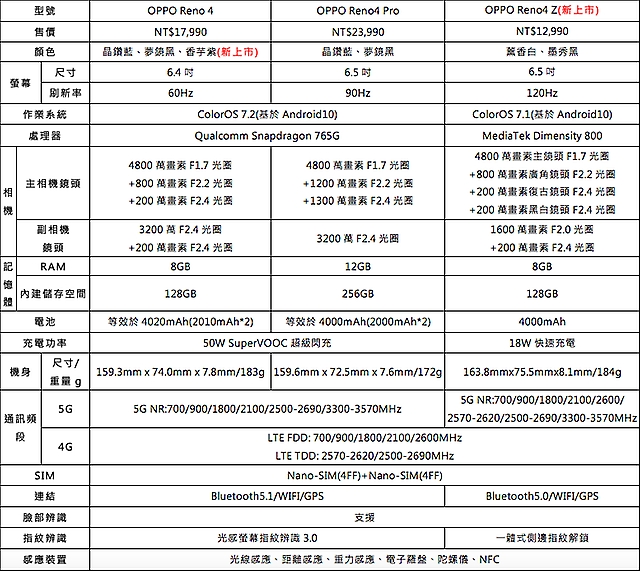 其中,Reno4 Z 主打搭載 120Hz 螢幕,支援 5G 上網,擁有「超級動態夜景」功能。