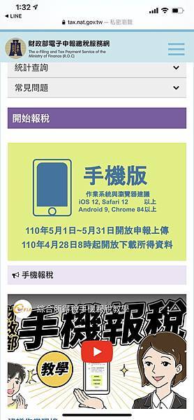 進入財政部報稅頁面,點擊「手機版」綠色方塊,