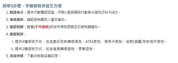 ▲綜合所得稅手機報稅流程一覽。