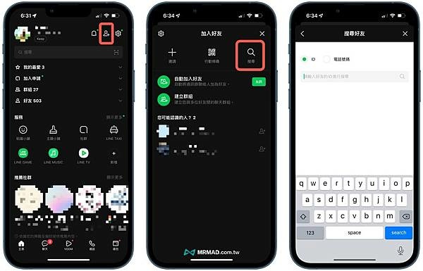 2. 搜尋好友 LINE ID、電話號碼加好友;