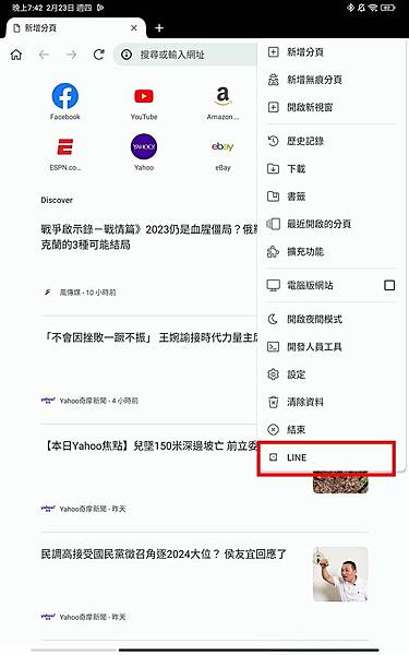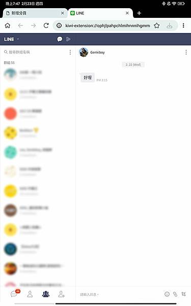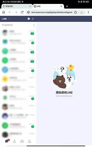 首先,我們需要先在 Android 平板電腦下載《Kiwi Browser》的瀏覽器 APP,大家可以透過 Play 商店完成下載。安裝啟用後,打開瀏覽器並新增分頁,接著點選畫面右上角的「三個點」,也就是分頁設定功能,開啟後從中點擊「擴充功能」,接下來大家就可以前往 Google 線上應用程式商店,完成安裝網頁版的「LINE」擴充功能。