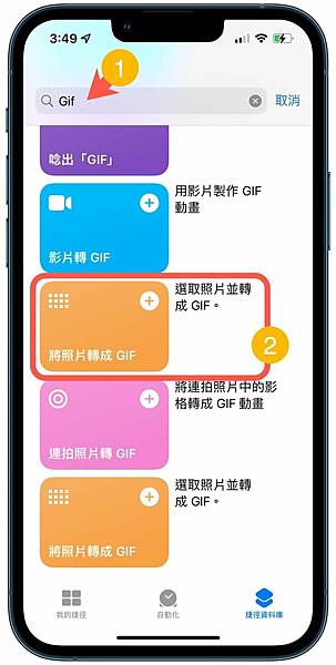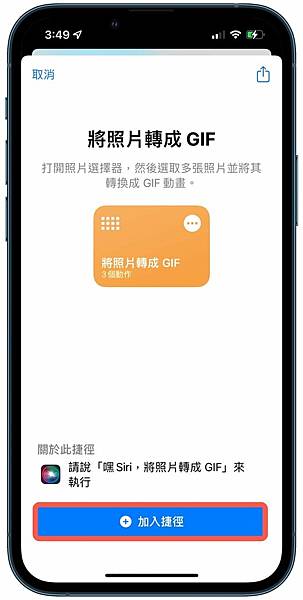 - 透過「捷徑APP」點選「將照片轉成GIF」捷徑腳本