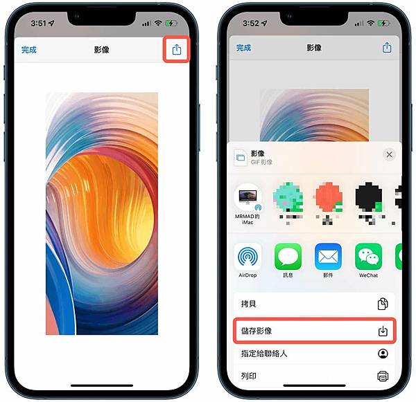 接著點選右上角「分享」按鈕 選擇「儲存影像」